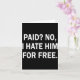 Paid No I Hate Him For - Funny Sarcasm Kort