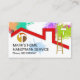 Täcket har en röd gräns tak ram som är täckt med färg. Handyman verktyg av en stege, en borst och hammare är på väg att påbörja reparationsarbeten. Kortets bas är namn och dess kontaktuppgifter som du kan ändra. Överst uppe finns en logotyp för hemsökning i guld som du kan använda följt av ditt prestigefyllda namn, kontaktuppgifter och ett sloganbildningsalternativ. Ett kort för underbar professionell för handyman, designers av insida och byggföretag till användan.
