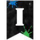 Fira med målarplatta med den här målarformen "Grattis på födelsedagen" med buntbanderoll, som innehåller formgivning av fet stänk på varje flagga. Perfekt för pojkar, tonåringar och barn. Den tillför en högenergivibb till vilken födelsedagsfest som helst, både inomhus och ute. Lätt att hänga över väggar, bord eller party tält - anpassade och färglös!