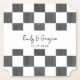 Add a personalized touch to cocktail hours and more with these custom coasters. The paper coasters have a black and white checkerboard background featuring painted black squares. They are ready to be personalized with names and wedding date.