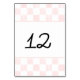 Create custom table number cards for your wedding or other special event. These cards have a pink checkerboard pattern at the top and bottom of the card with painted pastel pink squares and alternating plain white squares. Your number appears at the center of each card on both the front and the back. Please note you will have to fill in the number and create a separate card for each table number that you need.
