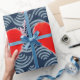 VARNING PAPPER FÖR ANYTIM MEN PERFEKT FÖR Valentindagen PAINTED HEART with BLUE JAPANESE WAVE MÖNSTER