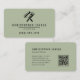 Help your painting business stand out from the crowd with this simple, minimalist sage green and black business card featuring rounded corners. The sage green background contrasts with the black crossed paint roller and paint brush logo and the black text to highlight your business name, contact information and other details. A QR code on the back takes customers and clients to your website.