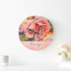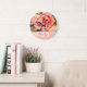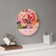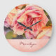 Painterly Rosa ros på Damask Monogrammed Stor Klocka