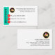 A simple retro design with a vertical cyan layer. Here lies your prestigious name with the contact details or remark captions held in their respective red painter's buttons. At the top is a gold "home-paint fan" logo you can use alongside the contact details.