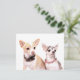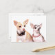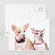 Två söta chihuahua hundar tittar söt med en rosa i färg på vit bakgrund