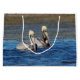 Ett par brunpelikaner flytande på Nordstranden av Fort De Soto Park i Sankt Petersburg i Florida. Denna bild fördes på North Beach av Debbie Quick of Debs Kreativ Bilder. Om du vill se fler bilder från Debbie kan du läsa hennes webbplats på: www.debscreativeimages.com