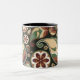 Mugg har en något retro paisley & blommigt-design i färg på hösten. Visas på en mugg med svart inuti, men kan ändras till andra färg och stilar.
