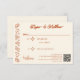 OSA kort samordnar sig med vår moderna Westerna inbjudan till en rustisk chic bröllop. I inslag ingår paisley och diamanter som traditionellt ingår i en bandana mönster, men det här är en modern cowboy och cowgirl. Minimal design med namn i skript. En QR-kod för elektroniska svar, aktuell behålla sak. Elfenben med textaccenter för rost färgad. Färg kan anpassas i Design Verktyg. All text kan anpassas i Design Verktyg
