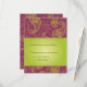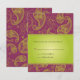 Gröna paisley mönster övertryck en rik lila bakgrund. Anpassad bröllopstext sitter på en limegrön gradientpanel. Bra för ett sydostasiatiskt tema bröllop eller när du vill göra ett varmt, djärvt uttalande. Finns i alternativa färger med matchande produkter.