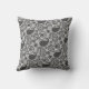 Dekorativ kudde i ett ornat paisley mönster i skuggor av lätt silver grått / grått till mörk grått med svart och vitt på ljusa silver grått-bakgrunden