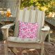 Dekorativ kudde i ett ornat paisley mönster i skuggor av djup fuchsisk rosa och burgundy, på baksidan av pastellkorall rosa