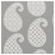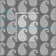 Ornate paisley mönster väv i blek silver grått / grått och vit på djupare grått-bakgrund i silver