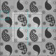 Ornate paisley mönster i klassisk svartvitt på en lätt bakgrund av silver grått / grått
