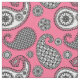 Paisley mönster, skuggor av grått på rosa tyg