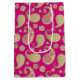 Mjuksäck i ett ornat paisley mönster i övertoningar av guld med ett faux metalliskt utseende, på en djup fuchsia rosa bakgrund