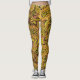 Paisley Motif in Yellow, Brown on Black Background Leggings