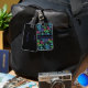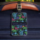 Bagagemärkre med en färgrika paisley och blommamönster på en svart bakgrunds- och anpassadetext som personifierar det.