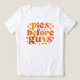 Den här roligten och den slimmade falltemade designen innehåller den lekande frasen "Paj före killar" i ett fet, återinspirerat teckensnitt. Texten är placerad i en kompakt, staplad layout med varje ord i ett annat teckensnitt stil, som skapar en dynamisk och öga-fångstsammansättning. I paletten färg ingår varma autokron som djupa orangar, rik och gyllene gulter, perfekt för att fånga säsongens mysiga viber.