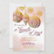 Anmälan om foto-gravid för julhelgen. Meddelandet lyder "Vi förväntar oss en mängd glädje" i dekorativ typografi, och mallen är redot för dig att lägga till ditt foto (på baksidan), baby namn och förfallodatum samt din signering och namn. Utformningen har överdimensionerade julprydnadsföremål och snöflingor i guld och ett slags irhärskande utseende på en fuktig vattenfärgsbakgrund.