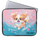 En berömvärd hund av kawaii-papillon i rosa och blått, med en lekfull papillonvalp som frossar i stänk av roligt. Anpassa med namn.