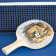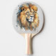 Pala de ping pong con un diseño vibrante y detallado, destacando el rostro de un león. La superficie de la pala está adornada con una imagen en colores cálidos: tonos marrones y grises que destacan la majestuosidad y el poder del león. Su melena, con cada hebra cuidadosamente pintada, se extiende hacia los bordes de la pala. El diseño artístico de la melena añade una sensación de fuerza y confianza, inspirando al jugador a dominar cada punto, como un verdadero "rey de la selva" del deporte.