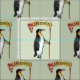 En illustration av ett palaeudyptes som är en utdödat art av Penguin. Det var en jättefågel som kunde vara upp till två meter lång. Chicken som en vit Penguin håller en banan med namn på den. En design för alla som kärlek Penguins.