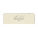 These modern minimalist wedding return address lables feature a contemporarty set of fonts in black for the sender address against a pale dusty yellow background.