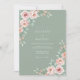 Delicate pale peach and blush pink blossoms intertwine with soft green foliage in this ethereal design. The painterly watercolor style evokes a gentle, romantic mood, perfect for a serene celebration.