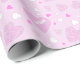 This hand drawn wrapping paper has a pale pink background filled with hearts in dark pink, white, and an even lighter pink. Some hearts are solid, some outlined, and others have geometric line patterns for a modern twist. The larger hearts include a customizable name area, making it perfect for personalized gifting. Use it for wrapping presents, scrapbooking, or artsy decoupage projects.