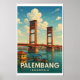 Bring the vibrant spirit of South Sumatra into your home with this stunning Palembang Vintage Travel Poster. This artistic illustration captures the iconic Ampera Bridge, the majestic symbol of Palembang, towering over the serene Musi River.