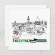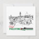 Traditionella palestinska hem står stolta, symboliserar det bestående arvet och det orubbliga hoppet om återvändande, och ord "Besök Palestina" visas bredvid den palestinska flagga.