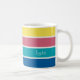 Lägg till ditt namn till detta glatta och lycklig mugg med ett dynamiskt färg-block rand. Utformningen har en modern palett av blått, friskt, mjukt rött, gult och moln i färg.