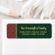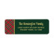 Röd och Grönt Play Gold Foil Script jul-Returetiketter med vår moderna typografi av God jul i faux-guld-folie på en sluttande helgdag med rött, grönt, vitt och rand av mer faux-guld-folie, inställd på en mysiga vinklare. Designad med Cedar & String. kontakta oss på cedarandstring@gmail.com om du behöver hjälp med designen eller fråga om matchande produkter.