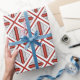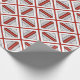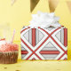 Det fetstilta geometriska mönstren har vitt, grått och rött.