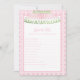 This Palm Beach preppy styled bridal shower game has cabana umbrella on top with a pink and white cane webbing pattern. You can edit the game categories to fit the needs of your event.