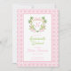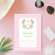 Denna möhippa inbjudan har en preppy grandmillennial design med rosa och gröna Palm Beach preppy stilade poolstolar och parasoller omgivna av palmer. Baksidan har ett rosa och vitt käppvävningsmönster. Du kan anpassa med dina evenemangsuppgifter.