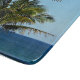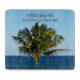 Add a calm coastal touch to your kitchen with this glass cutting board featuring a bright palm tree and deep blue ocean. The open sky area includes two editable text lines where you can add your family name and vacation year or trip phrase.