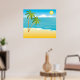 A scenic view of a palm tree beach with a bright sun. This design looks really effective on these Poster