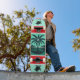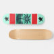 Custom skateboard featuring a dramatic palm tree and tropical island silhouette against vintage dark green, light green, and red stripes. Turtle silhouettes grace the top and bottom of this beach theme skateboard. Your or your recipient's initial monogram appears in green against the palm tree. Make sure to type your initial to replace the placeholder sample in the Peronalize section.