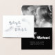 Palmblad Handritade bokstäver Spara datumet Folierat Kort