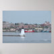 New Bedford och Fairhaven i Massachusetts hamnen med Palmer Island och dess fyr. Ljuset finns i innerhamnen och styr marinererna till kanalen. New Bedford-tändare i avstånd.
