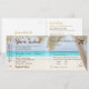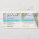 En boardingpass planbiljett bröllopsinbjudan mall på en palmer och sandstrand fotobakgrund med ett RSVP-kort inbyggt som gästerna kan klippa loss för att skicka sin respons till dig. Det finns utrymme på baksidan för valfria resebyrå och hotellbokningar och din bröllopswebbplats, så all information som gästerna behöver finns tillsammans på en enkel men unik stranddestination bröllopsinbjudan.