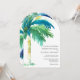 Fira skönheten av en strandbröllop i Florida med dessa tropiska bröllopsinbjudningar, designade i en modern bågdesign och med handmålad akvarell palmträds konst i mjuka nyanser av blå, turkos och grön. Inspirerad av den livfulla charmen i Key West, kombinerar denna svit avslappnad östil med samtida elegans, vilket gör den perfekt för tropiska firanden och strandceremonier.