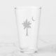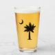 Tropiska handflatan-träd-silouette med en närvarande måne.