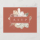 Elegant bohemisk stil vattenfärgstryck av djungelbladverk och blomsterarrangemang i vackra nyanser av rost, silvergrön, vit och sand beige, bröllopssvar med låtförfrågan vykort. Anpassa text, typsnitt, färg och storlek.