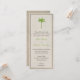 En bröllopinbjudan som kombinerar strukturen av burlap med enthemed palmträd, avbildar. Perfekt för ett strandbröllop.