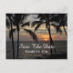Denna romantiska design har ett foto av en solnedgång på stranden med silhuetter av palmer. Anpassa detta vykort med detaljerna om ditt kommande bröllop. Dessa är bra för strand-, havs-, kust-, tropiska eller destination bröllop.