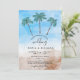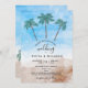 Planerar du bröllop på den romantiska strandön? Bjud in dina gäster med denna vackra inbjudan med akvarell palmträd illustration