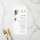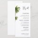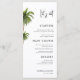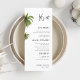 Denna eleganta palmträd-bröllopsmeny har en ren vit layout med raffinerad skrift och tropisk grönska för en fräsch destinationkänsla. Perfekt för ett strandbröllop, tropisk mottagning, destinationfest, kustnära repetitionmiddag, välkomstfest, öbrudvisning eller dagen-efter-brunch. En minimalistisk men exotisk stil som passar vackert med utomhuslokaler och varmt väder-dEkoration.